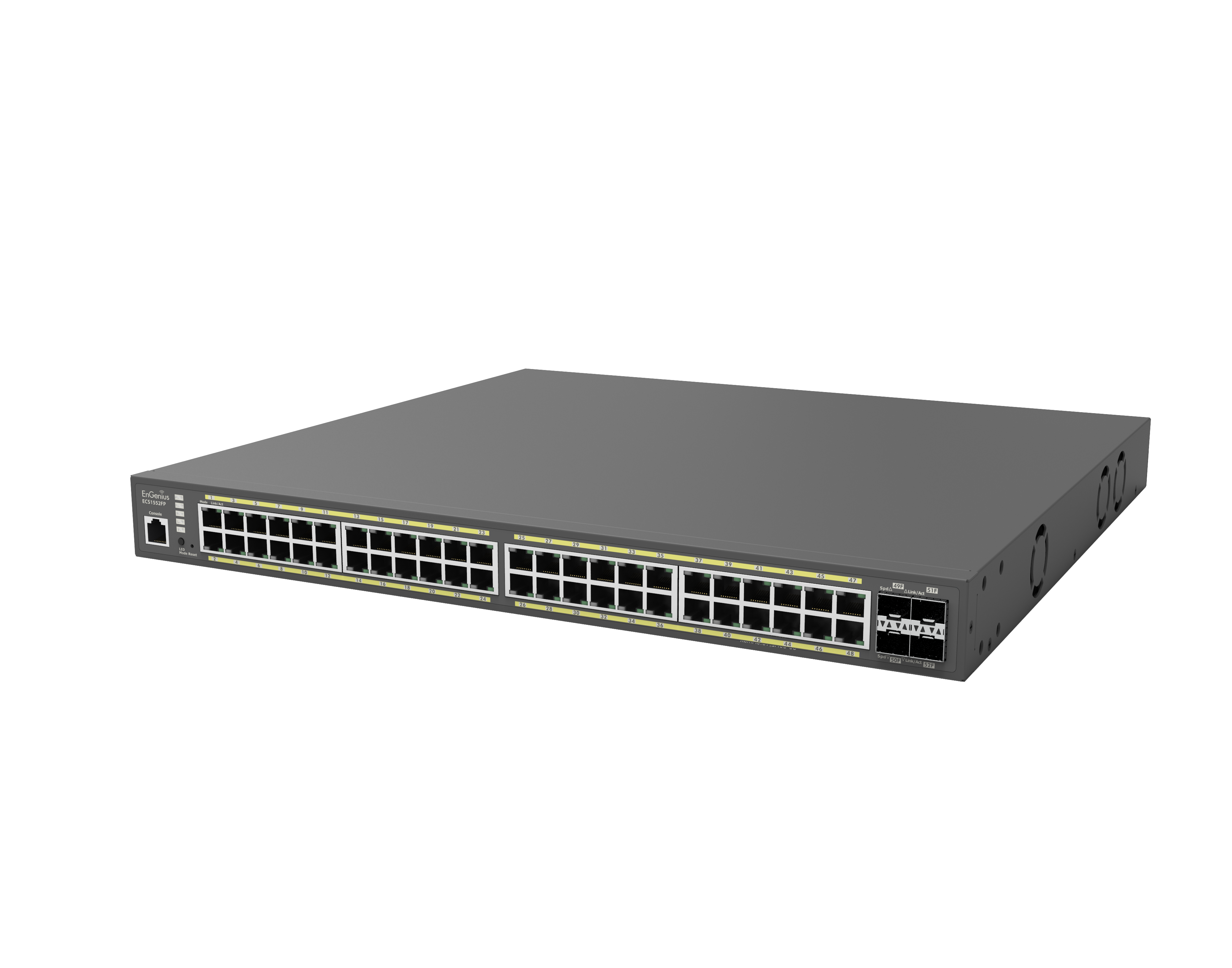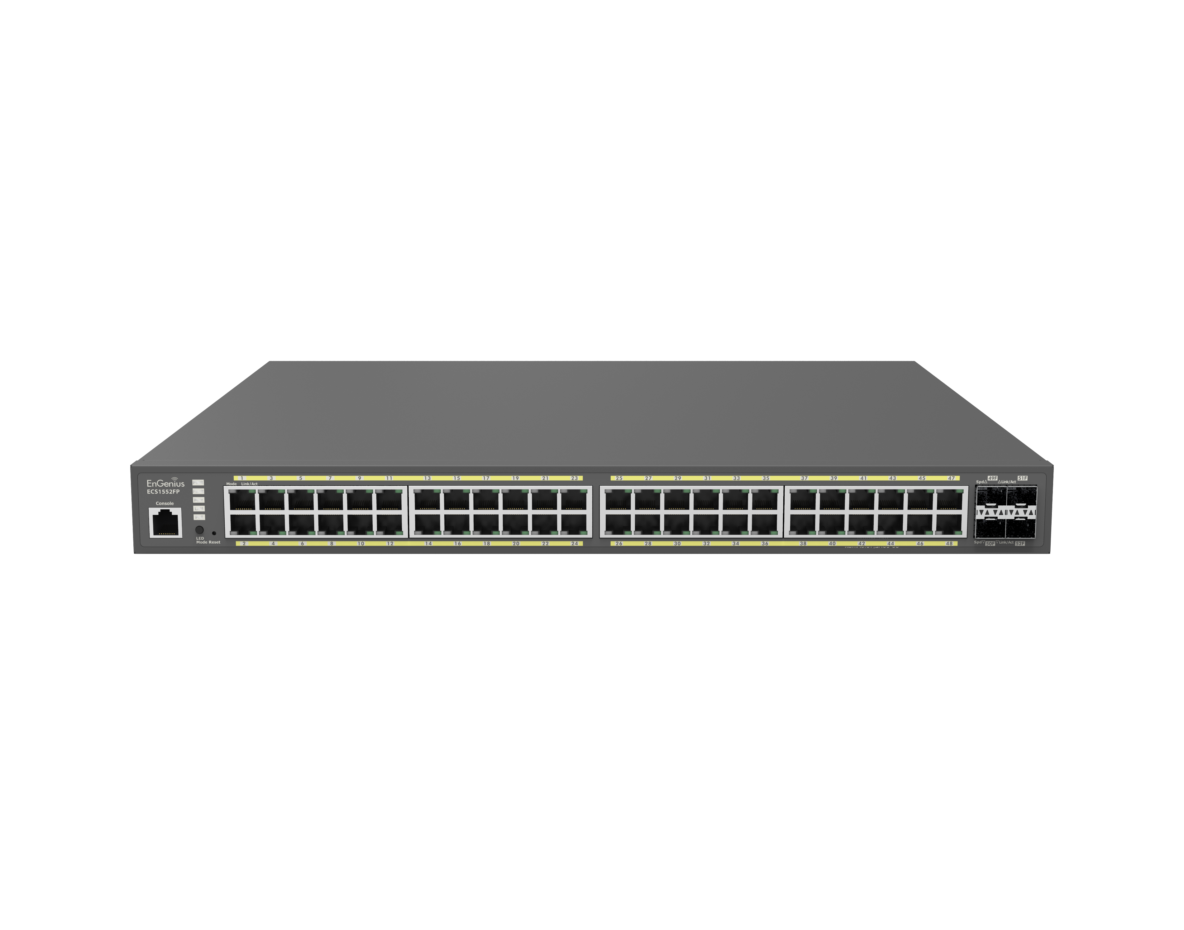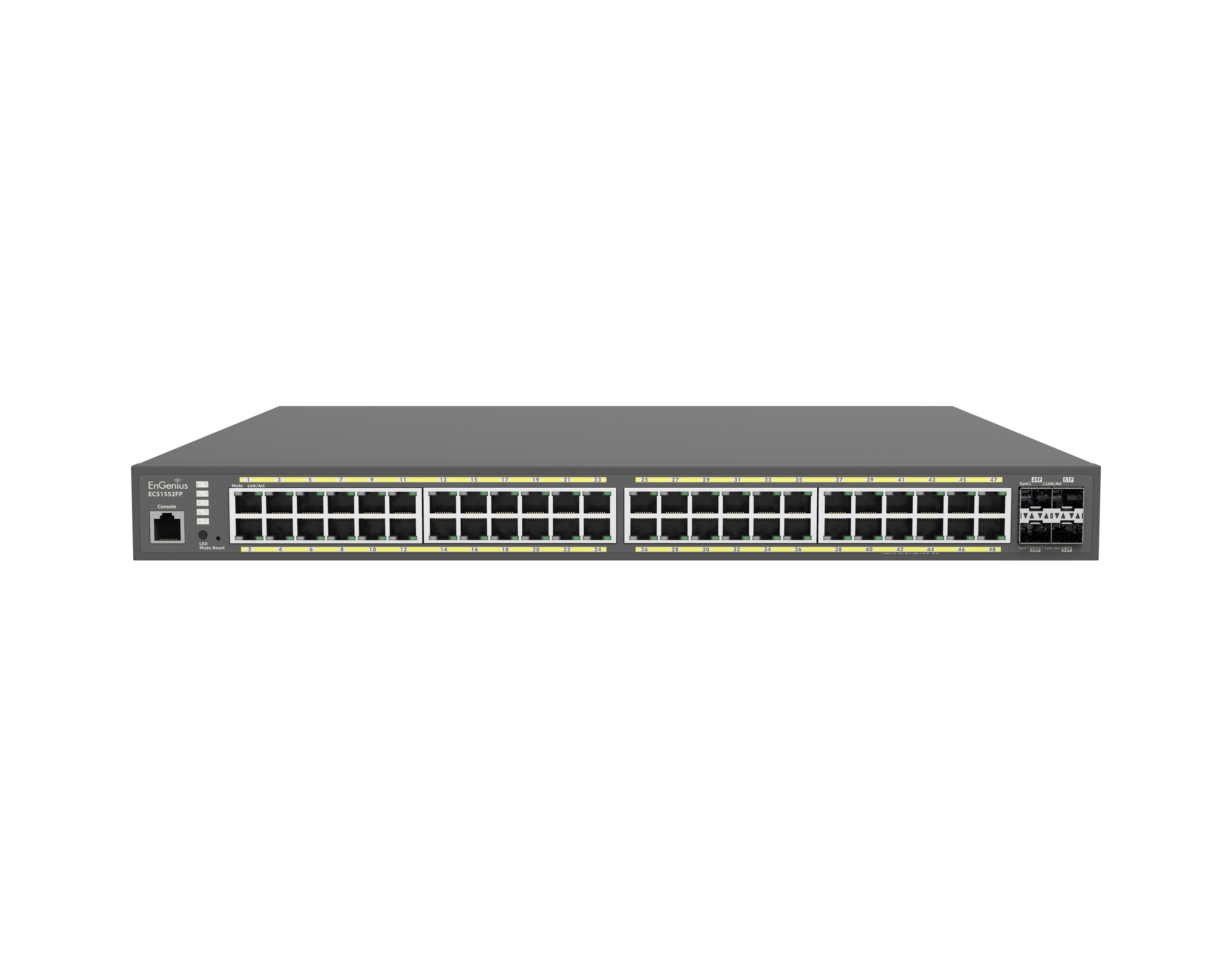 The Engenius ECS1552 is a 48-port gigabit switch with 4 SFP+ ports.