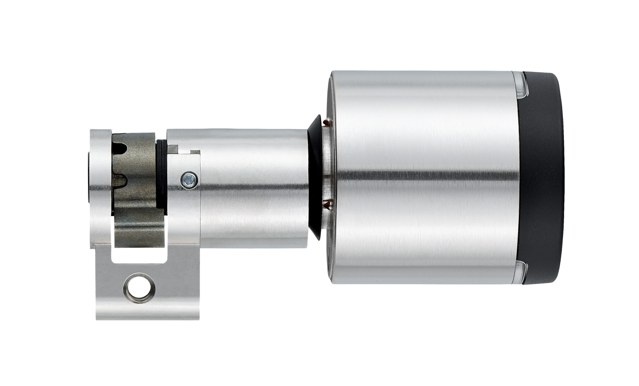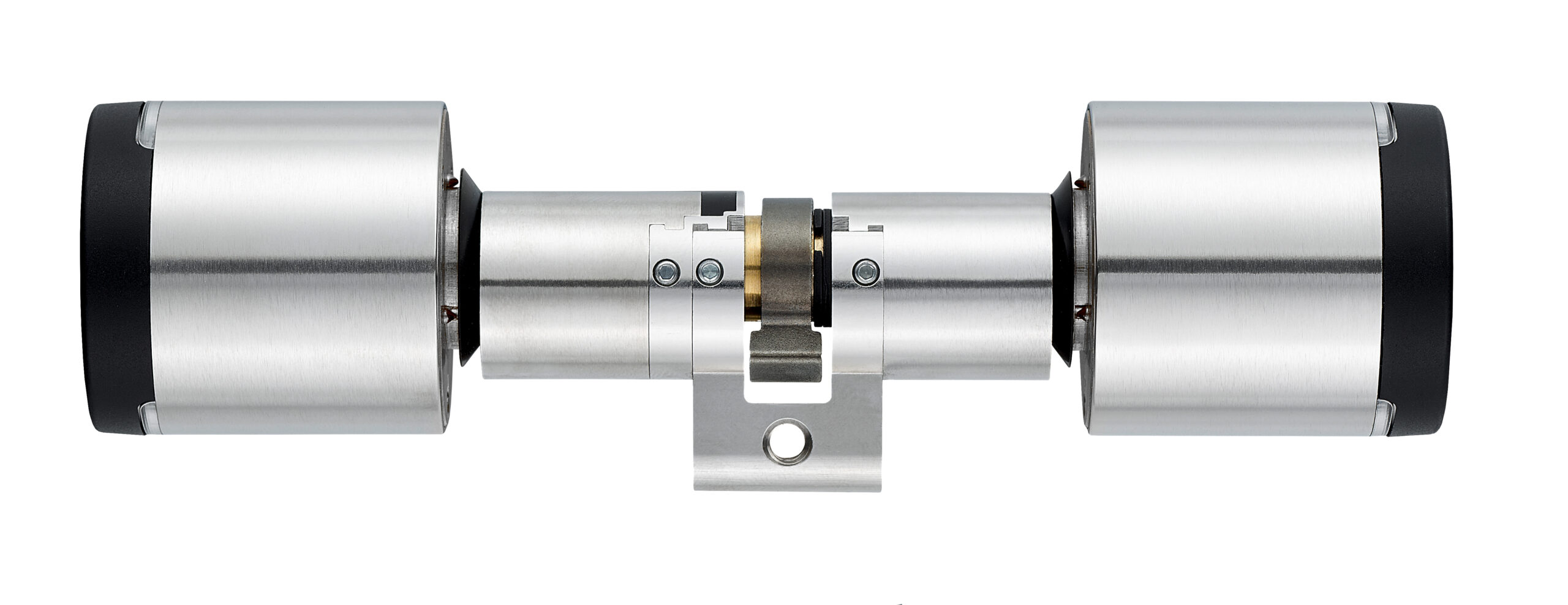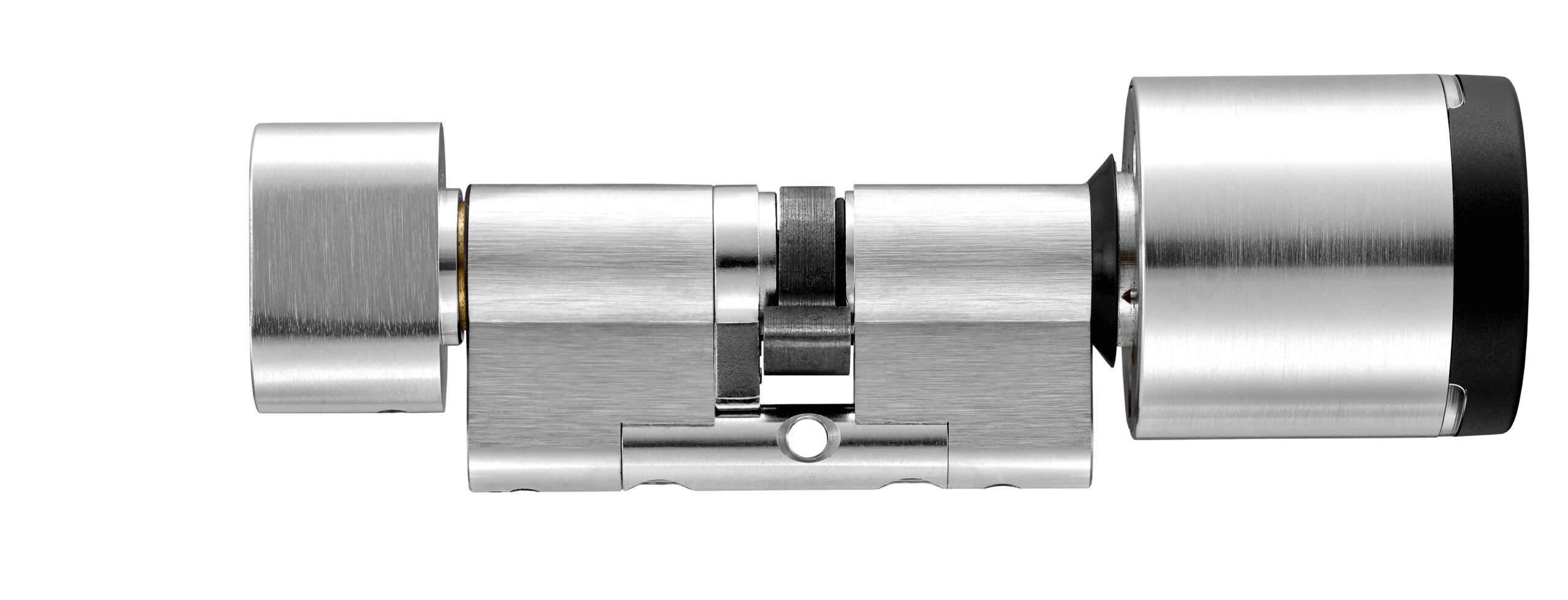 The cylinder features plug-pulling and drilling protection, a rotary damper, and an integrated secure element for secure data archiving.